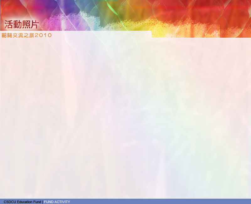 懲教社教育基金已於2010年4月4至6日舉辦韶關交流之旅,並帶領三十八名來自四所中學的師生 (包括:香海正覺蓮社佛教梁植偉中學、香海正覺蓮社佛教正覺中學、九龍工業中學和葵涌蘇浙公學),參與韶關市教育局合辦的農村小學體驗活動,在當地進行為期三天的交流活動,除了參觀該市芳塘村的芳塘小學外,亦探訪學生家庭,並跟當地小學進行互動學習。